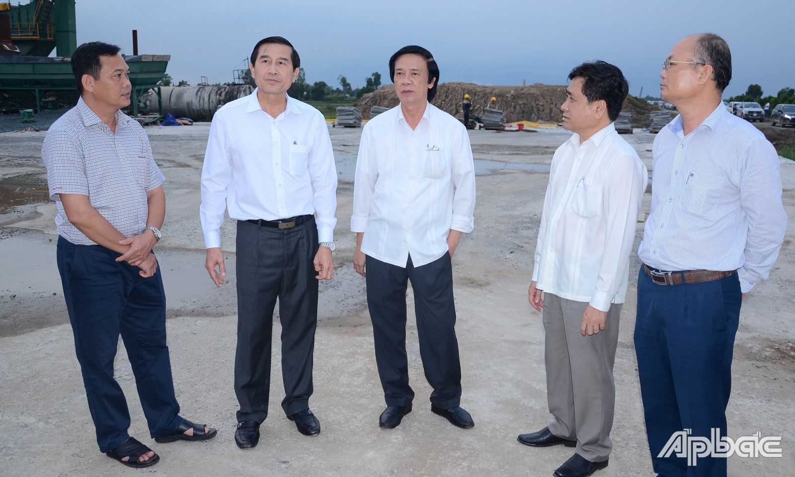 Đồng chí Nguyễn Văn Danh (giữa) cùng lãnh đạo UBND tỉnh Tiền Giang và thành viên trong đoàn khảo sát tiến độ Dự án.