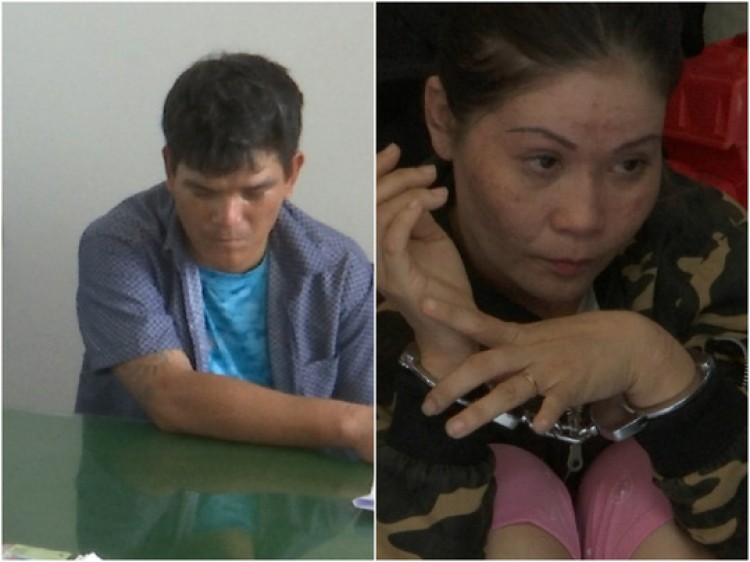 Cặp vợ chồng Tiến và Tú lúc bị bắt. Ảnh: Công an cung cấp