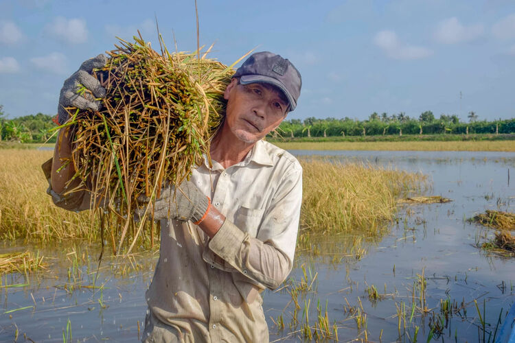 Ông Châu Minh Lào (65 tuổi), ngụ ấp Lý Ấn, xã Hưng Mỹ, tỉnh Cà Mau cho biết, ở những khu vực đất trũng, mềm và ngập nước, máy gặt đập liên hợp không thể hoạt động được, vì nguy cơ sụp lún là rất cao. Do đó, để thu hoạch lúa, chủ đất chỉ còn cách thuê nhân công cắt lúa theo cách truyền thống.