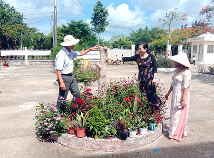 Cây xanh tại Trường Tiểu học Vĩnh Thuận Đông 1, huyện Long Mỹ hàng năm đều được chăm sóc, cắt nhánh tỉa cành cẩn thận.