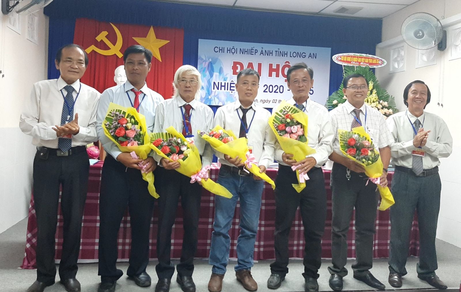 Ban Chấp hành mới ra mắt đại hội. NSNA Lê Tòng (giữa) được bầu làm Chi hội trưởng Chi hội Nhiếp ảnh nhiệm kỳ mới