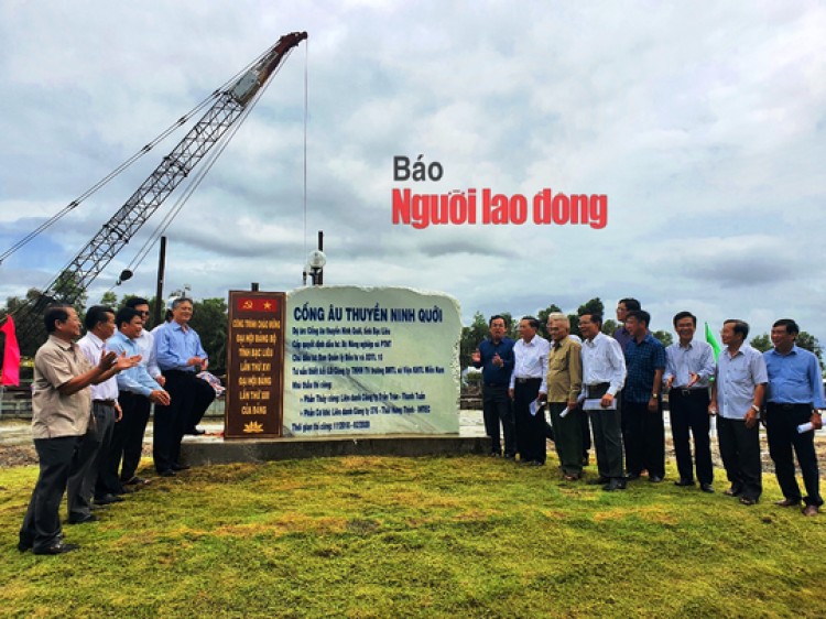 Các đại biểu gắn biển công trình cống âu thuyền và chính thức vận hành