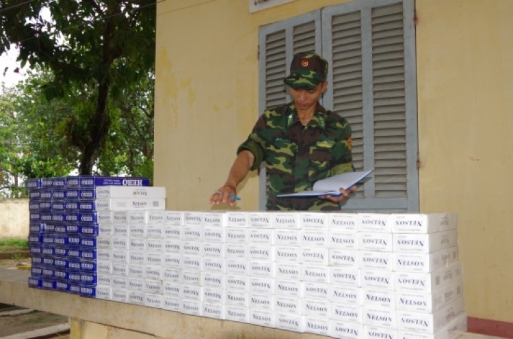 Tang vật thuốc lá ngoại nhập lậu bị Đội đặc nhiệm phòng chống ma túy và tội phạm, BĐBP Đồng Tháp bắt giữ ngày 11-8-2018. Ảnh: Hồ Phúc