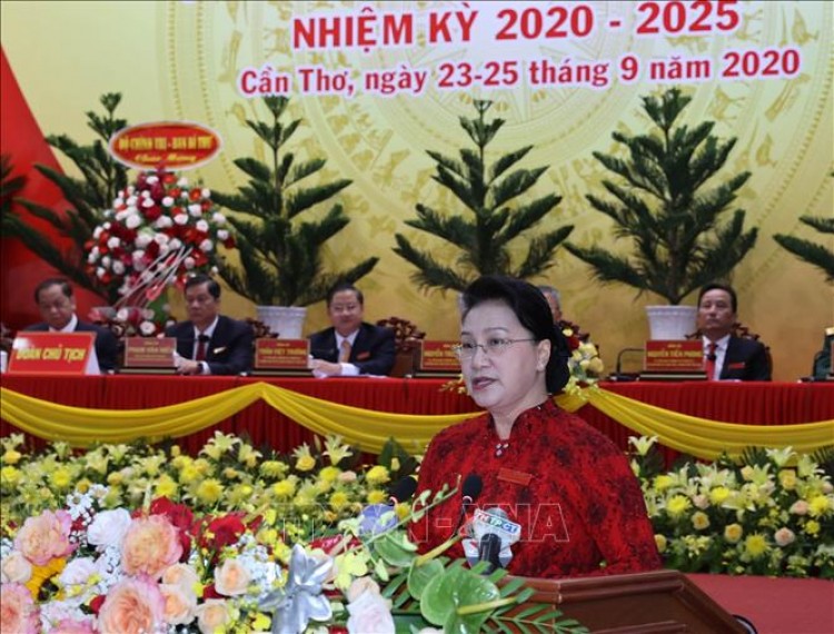 Chủ tịch Quốc hội đề nghị các đại biểu tham dự Đại hội thảo luận sâu, phân tích kỹ những nguyên nhân chủ quan để tìm ra giải pháp khắc phục những mặt còn hạn chế, nhằm tạo ra sức bật mới cho bước phát triển sắp tới của thành phố. Đại hội cần tổ chức tổng kết, đánh giá những khâu đột phá của nhiệm kỳ qua; các chương trình, đề án thực hiện Nghị quyết số 45 của Bộ Chính trị khóa IX và những kết luận, chỉ đạo của các đồng chí lãnh đạo Đảng, Nhà nước đối với Cần Thơ; cần quán triệt Nghị quyết số 59 ngày 5-8-2020 của Bộ Chính trị về xây dựng và phát triển thành phố Cần Thơ đến năm 2030, tầm nhìn đến năm 2045, để xác định mục tiêu, nhiệm vụ, giải pháp vừa đảm bảo tính kế thừa, phát triển, có tính khả thi cao cho nhiệm kỳ 2020 - 2025 và giai đoạn tiếp theo; phấn đấu sớm hoàn thành mục tiêu xây dựng và phát triển thành phố Cần Thơ trở thành đô thị hạt nhân; là thành phố xanh, văn minh, hiện đại mang đậm bản sắc miền Tây Nam Bộ; là trung tâm của vùng trên một số lĩnh vực quan trọng.