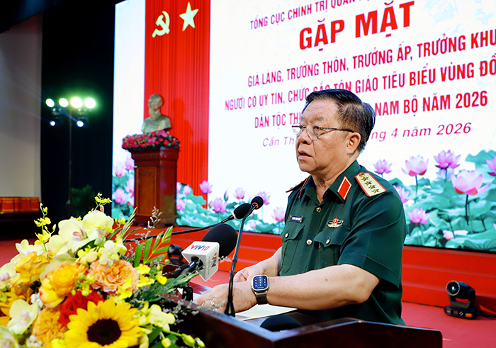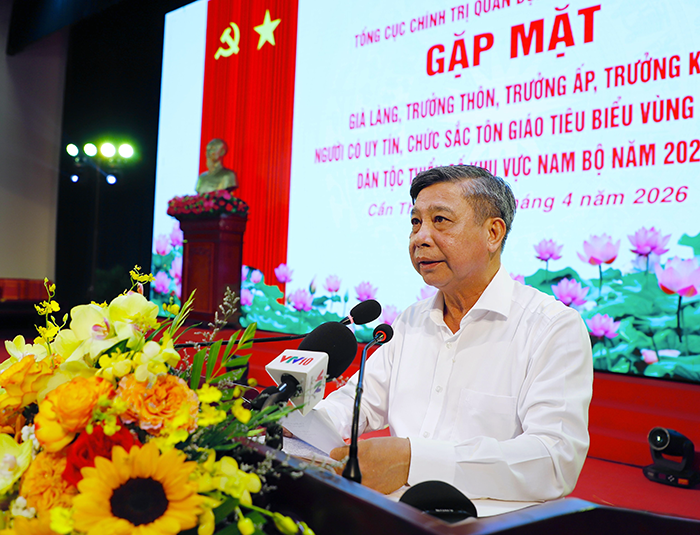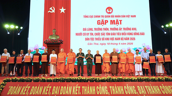 - Tiếp tục chuỗi hoạt động, tại hội trường Bộ Chỉ huy Quân sự TP Cần Thơ, Tổng cục Chính trị Quân đội nhân dân Việt Nam tổ chức Chương trình gặp mặt Đoàn đại biểu già làng, trưởng thôn, trưởng ấp, trưởng khu, người có uy tín, chức sắc tôn giáo tiêu biểu vùng đồng bào dân tộc thiểu số khu vực Nam Bộ năm 2026.