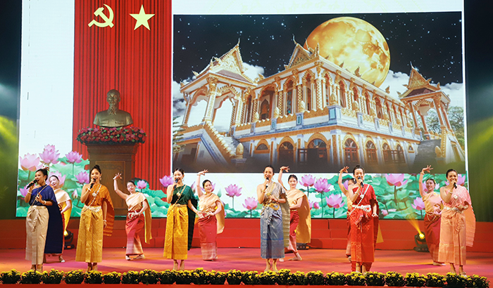 Tiết mục văn nghệ chào mừng tại chương trình gặp mặt. Ảnh: HỒNG VÂN