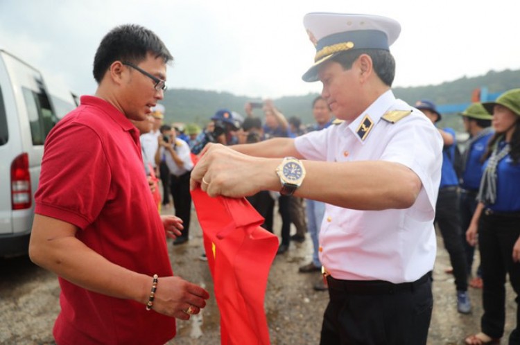 Chuẩn đô đốc Phạm Văn Luyện trao cờ cho ngư dân