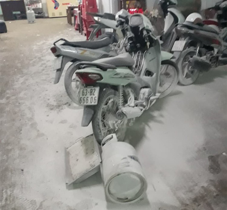 Nhiều xe máy trong tiệm cầm đồ bị đập phá gây hư hỏng