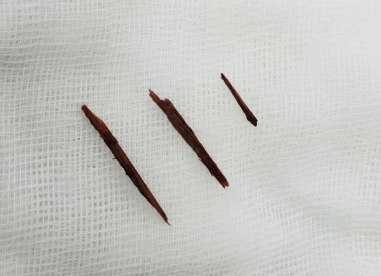 Thanh dăm gỗ lấy ra từ thành bụng người bệnh.