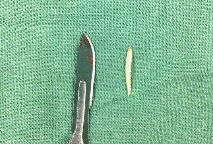 Các bác sĩ đã hút ra 500 ml mủ đục hôi, bơm rửa dịch mủ vùng cổ và trung thất trên. Vùng áp xe cổ trái lấy ra dị vật xương cá.