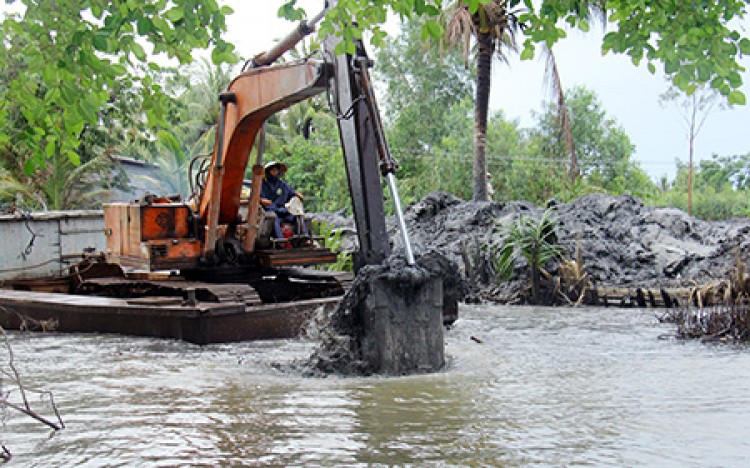 Nạo vét kênh thủy lợi ở Hậu Giang. Ảnh: H.THU