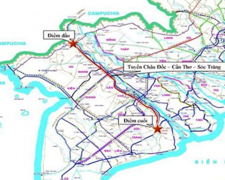 Bản đề hướng tuyến cao tốc Châu Đốc - Cần Thơ - Sóc Trăng