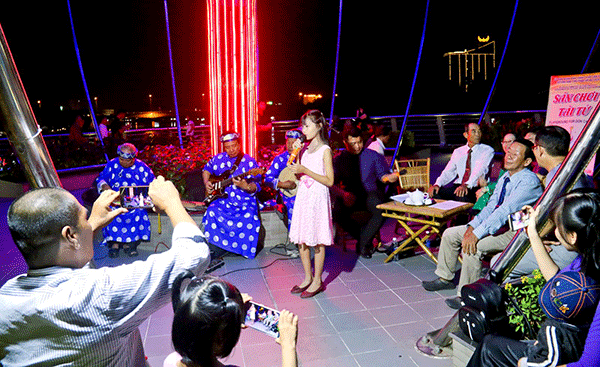 “Sân chơi đờn ca tài tử” do Trung tâm Văn hóa TP Cần Thơ thực hiện tại cầu đi bộ thu hút khán giả.
