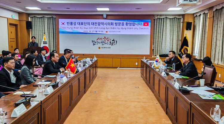 * Làm việc với Hội đồng TP Daejeon, Phó Bí thư Tỉnh ủy, Chủ tịch UBND tỉnh- Lữ Quang Ngời thông tin về tình hình phát triển kinh tế của tỉnh Vĩnh Long 9 tháng năm 2025 và về các dự án FDI trên địa bàn.