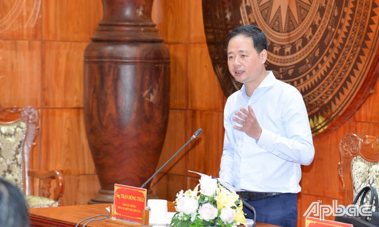 Đồng chí Trần Hồng Thái phát biểu tại buổi làm việc.