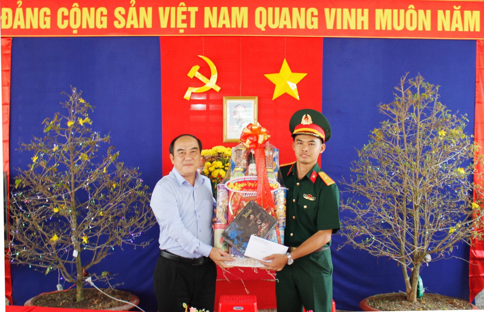 Ông Trương Văn Nọ tặng quà cho Trung đội pháo 105