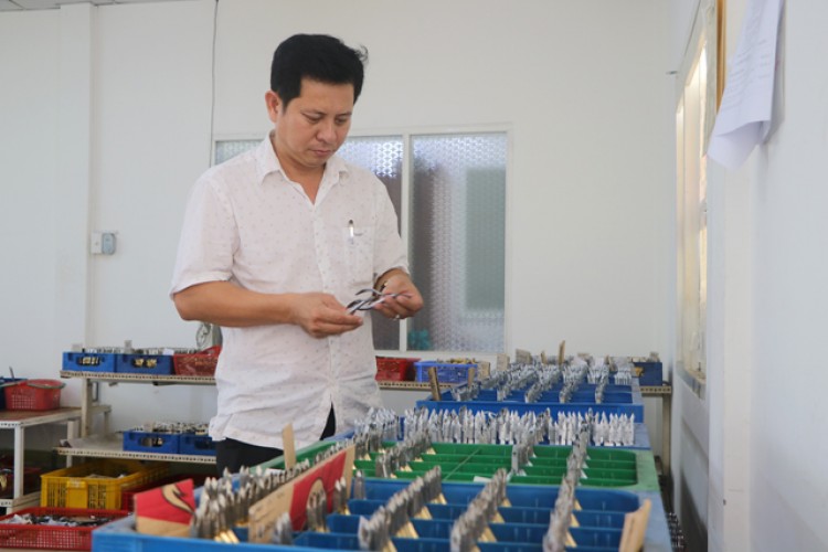 Ông Nguyễn Văn Bén - Giám đốc Công ty TNHH MTV Bén Linh kiểm tra sản phẩm kềm trước khi xuất xưởng