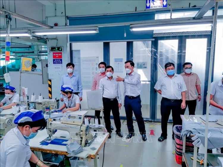 Lãnh đạo UBND TP Cần Thơ tham quan xưởng may của Công ty cổ phần May Tây Đô (quận Ninh Kiều).