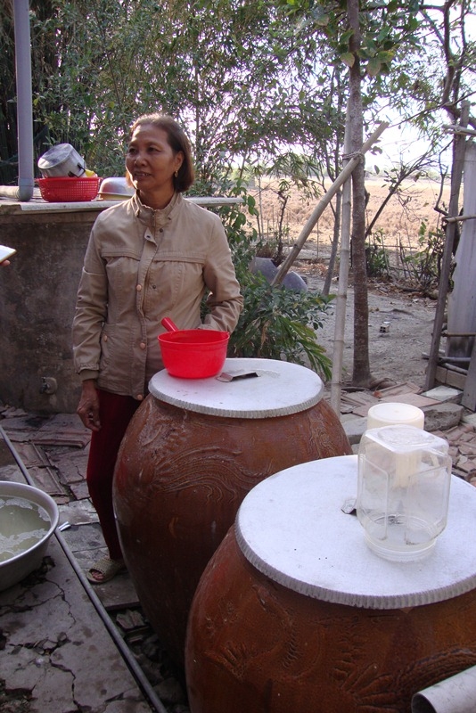 Người dân Tiền Giang chuẩn bị vật dụng chứa nước ngọt (Ảnh: K.V)