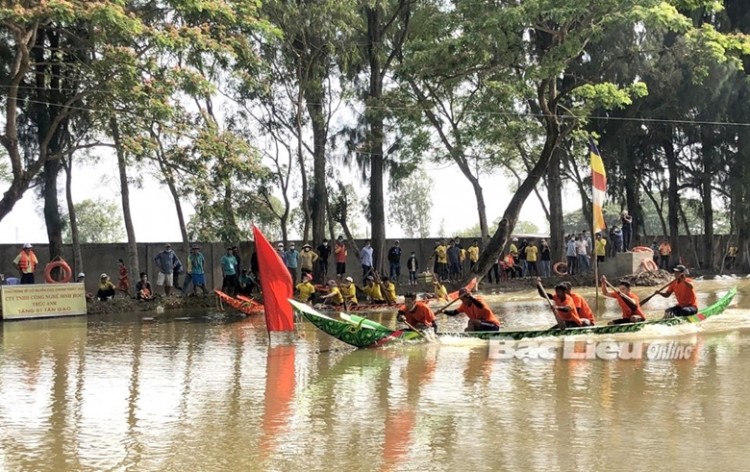 Đua ghe Ngo mừng Tết cổ truyền của đồng bào Khmer. (Ảnh: Báo Bạc Liêu)