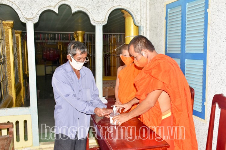 Lễ Sene Đôn Ta của đồng bào Khmer năm nay sẽ diễn ra từ ngày 16 đến 18-9. Ghi nhận thực tế ở nhiều điểm chùa Nam tông Khmer tại các địa phương trong tỉnh cho thấy, công tác tổ chức chuẩn bị cho mùa lễ tinh gọn, với nhiều giải pháp chủ động phòng, chống và ngăn chặn sự lây lan của dịch Covid-19. Vào buổi tối, chúng tôi có mặt tại chùa Bai Chhau (Bãi Xàu), thị trấn Mỹ Xuyên (Mỹ Xuyên), không khí nơi đây diễn ra các nghi thức Ph’chum-banh, hay Kanh-banh (15 ngày) cũng yên tĩnh. Lượng phật tử mỗi đêm của mỗi wên (tổ) đến chùa cúng dường chư tăng tại chùa cũng không đông đúc như mấy năm trước. Bên cạnh đó, để chung tay phòng, chống dịch Covid-19 nhà chùa đặt chai nước rửa tay sát khuẩn trước khi người dân hoặc bà con phật tử bước vào chùa.