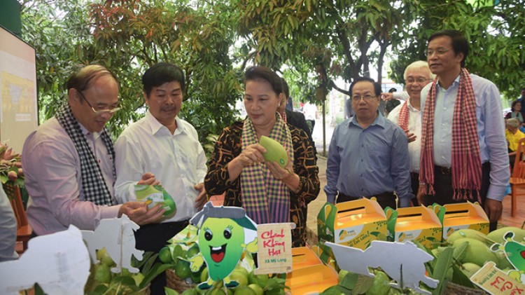 Chủ tịch QH Nguyễn Thị Kim Ngân tìm hiểu về chất lượng xoài Cao Lãnh ẢNH: TRẦN NGỌC