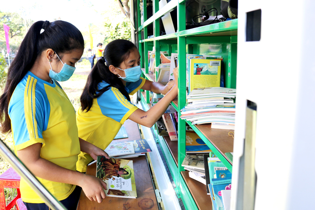 Học sinh tham gia hoạt động đọc sách do Thư viện tỉnh tổ chức tại Khu Di tích Nguyễn Sinh Sắc