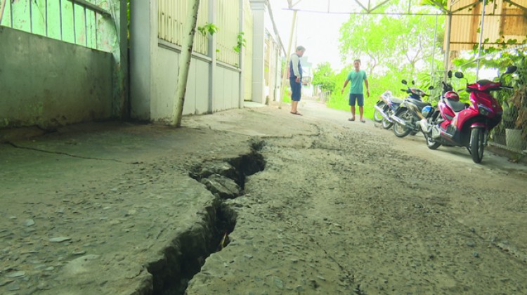 Sau những trận mưa lớn, tuyến đường cầu Cái Tàu Hạ - Xóm Cưởi đoạn thuộc khóm Phú Hòa và Phú Bình, thị trấn Cái Tàu Hạ, huyện Châu Thành (Đồng Tháp) đã xuất hiện nhiều vết nứt có chiều dài trên 600m, nhiều nhà cặp bờ sông có hiện tượng sụp lún, nguy cơ sạt lở có thể xảy ra bất cứ lúc nào. Hiện khu vực này có 33 hộ dân với trên 100 nhân khẩu đang sinh sống.