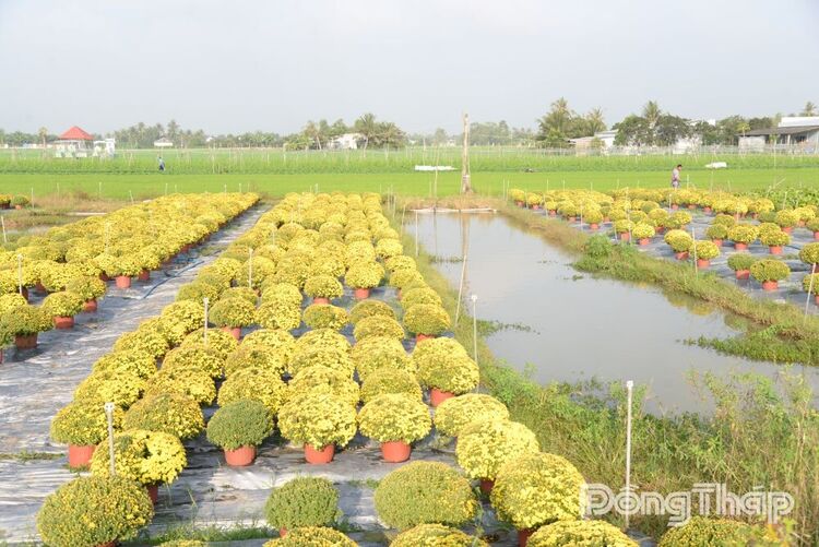 Vụ tết năm nay, gia đình ông Mai Trung Kiên (ấp Thạnh Hưng, xã Vĩnh Bình) xuống giống khoảng 6.500 giỏ hoa tết; trong đó có khoảng 1.500 giỏ cúc mâm xôi. Tuy nhiên, hiện nhiều chậu cúc mâm xôi, nụ hoa đã bung nở sớm so với dự kiến.