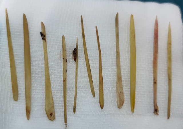 11 que tăm được các bác sĩ lấy ra từ ổ bụng của bệnh nhân T.