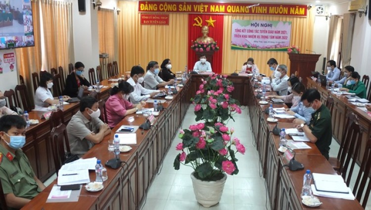 Năm 2021, mặc dù gặp nhiều khó khăn do tình hình dịch Covid-19, nhưng Ban Tuyên giáo các cấp đã thích ứng tình hình, khắc phục khó khăn tập trung nỗ lực hoàn thành tốt nhiệm vụ. Nổi bật kịp thời tham mưu tổ chức học tập, quán triệt, sơ kết, tổng kết nhiều nghị quyết, chỉ thị, kết luận của Đảng, của Tỉnh ủy thuộc lĩnh vực tuyên giáo như: sơ kết 5 năm thực hiện Chỉ thị số 05 của Bộ Chính trị về đẩy mạnh học tập và làm theo tư tưởng, đạo đức, phong cách Hồ Chí Minh; xây dựng Nghị quyết về “Xây dựng văn hóa và con người Đồng Tháp nghĩa tình, năng động, sáng tạo”; chương trình hành động thực hiện Nghị quyết Đại hội XIII của Đảng.