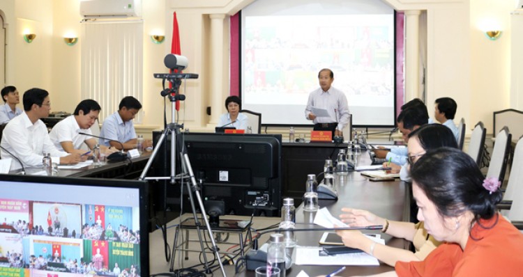 Phó Chủ tịch UBND tỉnh Đồng Tháp Đoàn Tấn Bửu phát biểu tại điểm cầu tỉnh