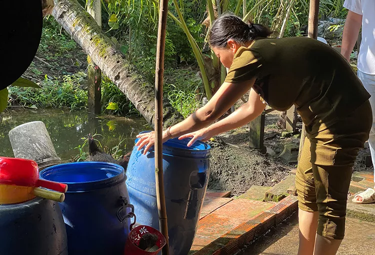 Người dân súc rửa lu nước loại bỏ lăng quăng.