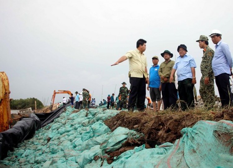 Trước đó, vào ngày 4-8, do có nguy cơ vỡ đê, tỉnh Cà Mau đã huy động lực lượng quân sự, quản lý đê điều, xung kích địa phương… với tổng cộng 200 người đã vào và tấn được 7.000 bao tải đất, đóng gia cố 2.500 cừ tràm xử lý được 150m đê bị sạt lở nguy hiểm nhất, đánh chìm 1 xà lan để ngăn chặn những cơn sóng lớn đánh vào những điểm sạt lở nghiêm trọng nhất.