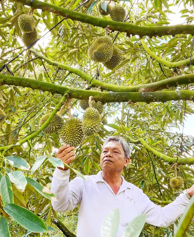 Nửa tháng qua, giá sầu riêng giống Monthong loại 1 được thương lái thu mua với giá 90.000-110.000 đồng/kg (nông dân lãi khoảng 40.000-50.000 đồng/kg). Giống Ri 6 cũng duy trì mức giá ổn định 55.000-70.000 đồng/kg, lợi nhuận gần 30.000 đồng/kg. Lão nông Trần Thanh Ba, có 2 mẫu sầu riêng tại xã Ngũ Hiệp, phấn khởi chia sẻ, năm nay thời tiết thuận lợi, xâm nhập mặn trên sông Tiền đến chậm và không lấn sâu, hệ thống cống đập khép kín nên nước ngọt dồi dào, trái sầu riêng đạt chất lượng rất tốt.