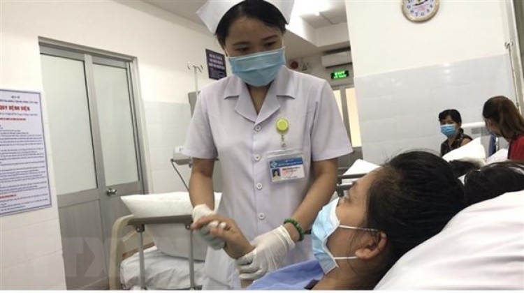 Bác sỹ thăm khám cho sản phụ sau phẫu thuật. (Nguồn: TTXVN phát)