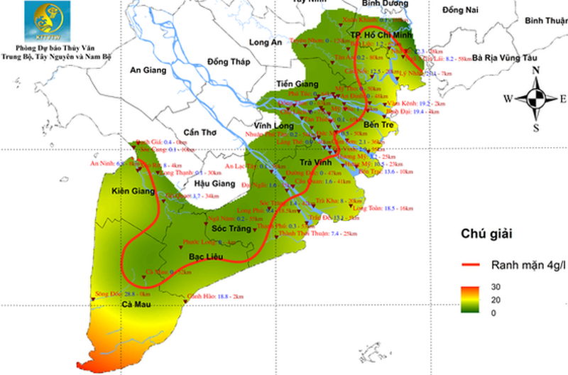 Theo Tổng cục phòng chống thiên tai, dự báo nước mùa kiệt 2020 – 2021 về đồng bằng thấp. Dự báo hạn mặn lên cao nhất vào đúng dịp Tết Nguyên đán, từ ngày 8 – 16-2-2021, mặn 4g/l có thể xâm nhập sâu trên dòng chính, các cửa sông Cửu Long 48 – 70km và trên sông vàm cỏ 75 – 90km.