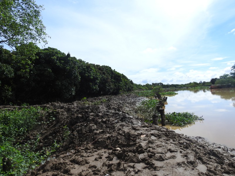 Đắp đập ngăn mặn để bảo vệ vườn cây ăn trái tại Tiền Giang