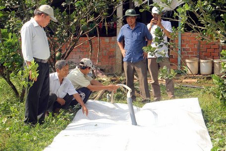 Giải pháp trữ ngọt bằng túi nhựa dung tích lớn cũng được ngành chuyên môn khuyến cáo giúp nhà vườn ứng phó hiệu quả với xâm nhập mặn.