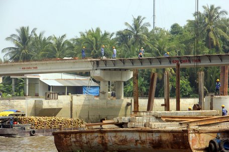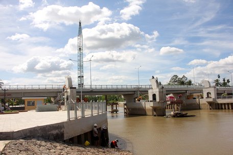 Cống Tân Dinh (thuộc Vĩnh Long và Trà Vinh) đang được thi công những công đoạn cuối.