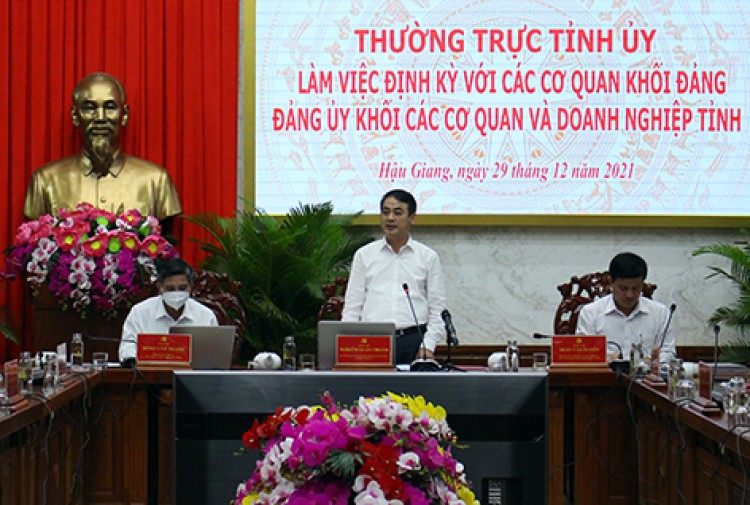 Bí thư Tỉnh ủy đề nghị các đơn vị triển khai đúng, đầy đủ, hiệu quả các chức năng, nhiệm vụ, yêu cầu trong năm 2022. Cụ thể, Ban Tổ chức Tỉnh ủy tham mưu thực hiện tốt công tác kiểm điểm, đánh giá tập thể và cá nhân cuối năm, đảm bảo về thời gian và thực chất; tăng cường tham mưu cho Tỉnh ủy chỉ đạo triển khai thực hiện tốt các đề án, kế hoạch về công tác tổ chức, cán bộ đã ban hành.