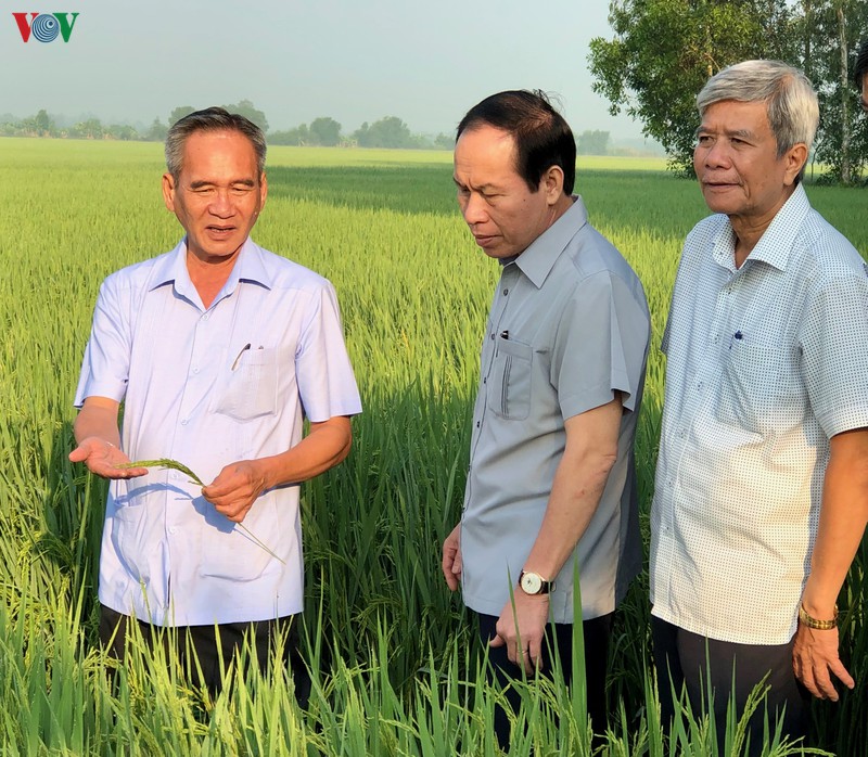 Ông Lữ Văn Hùng- Bí thư Tỉnh ủy Hậu Giang và ông Lê Tiến Châu- Chủ tịch UBND tỉnh Hậu Giang ( từ trái sang) kiểm tra công tác phòng chống hạn mặn trên địa bàn thành phố Vị Thanh.