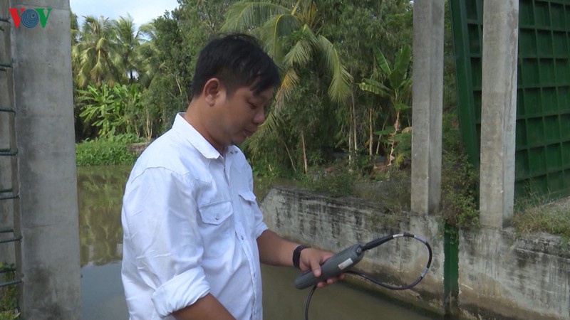 Cán bộ chuyên môn thường xuyên kiểm tra độ mặn trên kênh rạch
