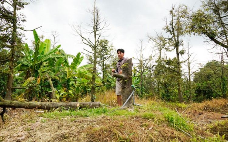 Một vườn sầu riêng ở xã Ngũ Hiệp, huyện Cai Lậy (Tiền Giang) bị chết, phải chặt bỏ để chuyển sang trồng loại cây khác.