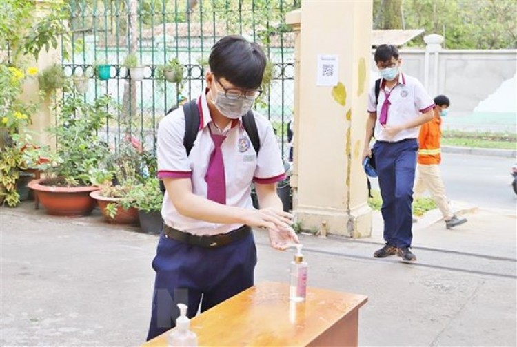 Nhà trường xây dựng các phương án xử lý cụ thể với nhiều bước như khi xuất hiện trường hợp nghi mắc COVID-19 thì khoanh vùng dãy lớp học có ca nhiễm; phân luồng học sinh, phối hợp với đơn vị y tế điều tra dịch tễ… Học sinh được cán bộ nhà trường hướng dẫn đo thân nhiệt và rửa tay sát khuẩn trước khi vào lớp.