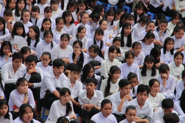 Học sinh sẽ khai giảng năm học mới 2020- 2021 vào ngày 5-9 như mọi năm. Trong ảnh: Lễ khai giảng năm học mới 2019- 2020.