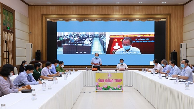Ban Chỉ đạo phòng, chống dịch Covid-19 tỉnh họp khẩn với các ngành và địa phương liên quan ca nghi nhiễm Covid-19 đang điều trị tại khoa nội Bệnh viện Đa khoa Sa Đéc (Ảnh: CTV)