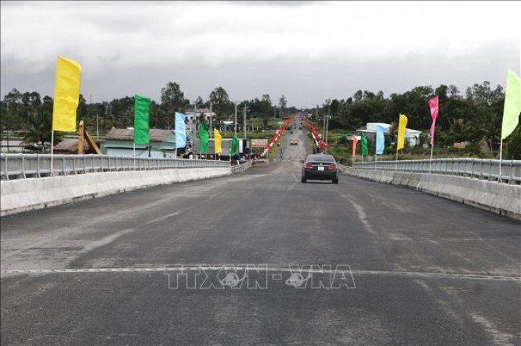 Dự án tuyến đường trục phát triển kinh tế từ thành phố Sóc Trăng qua cầu Dù Tho đến vùng kinh tế trọng điểm tôm-lúa tỉnh Sóc Trăng. Ảnh: TTXVN phát