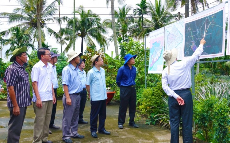 Đoàn khảo sát nghe thuyết trình tại vị trí xây dựng cống Cái Lớn, Cái Bé.