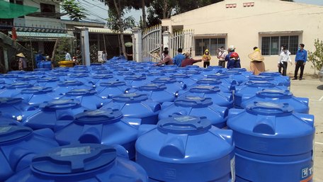 Thời gian qua, các cơ quan, đơn vị, doanh nghiệp trong và ngoài tỉnh đã hỗ trợ người dân nhiều bồn chứa nước giúp giảm bớt khó khăn về nguồn nước cấp cho sinh hoạt.